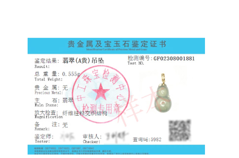 贵金属及宝玉石鉴定证书正反面
